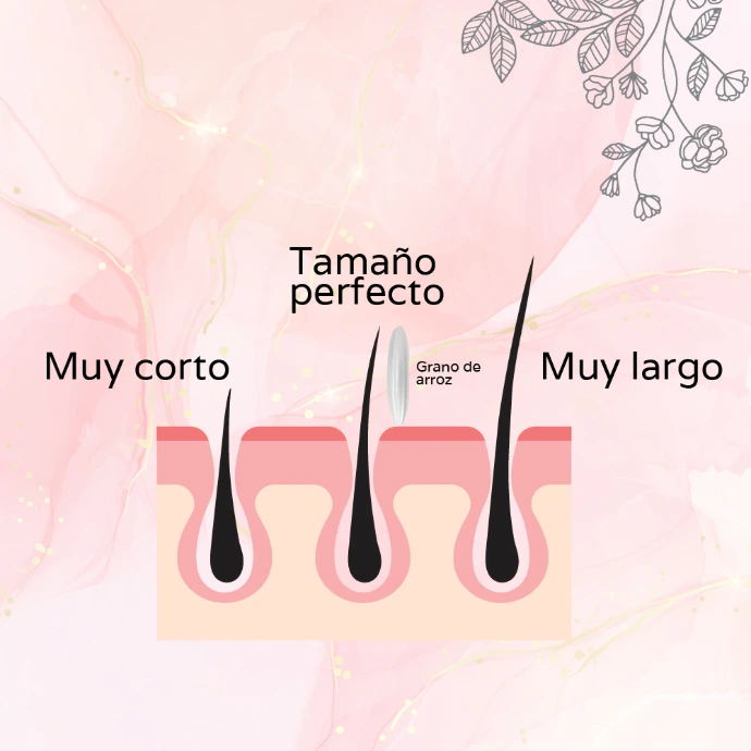 El largo ideal del vello es similar al de un grano de arroz para lograr una depilación más efectiva.